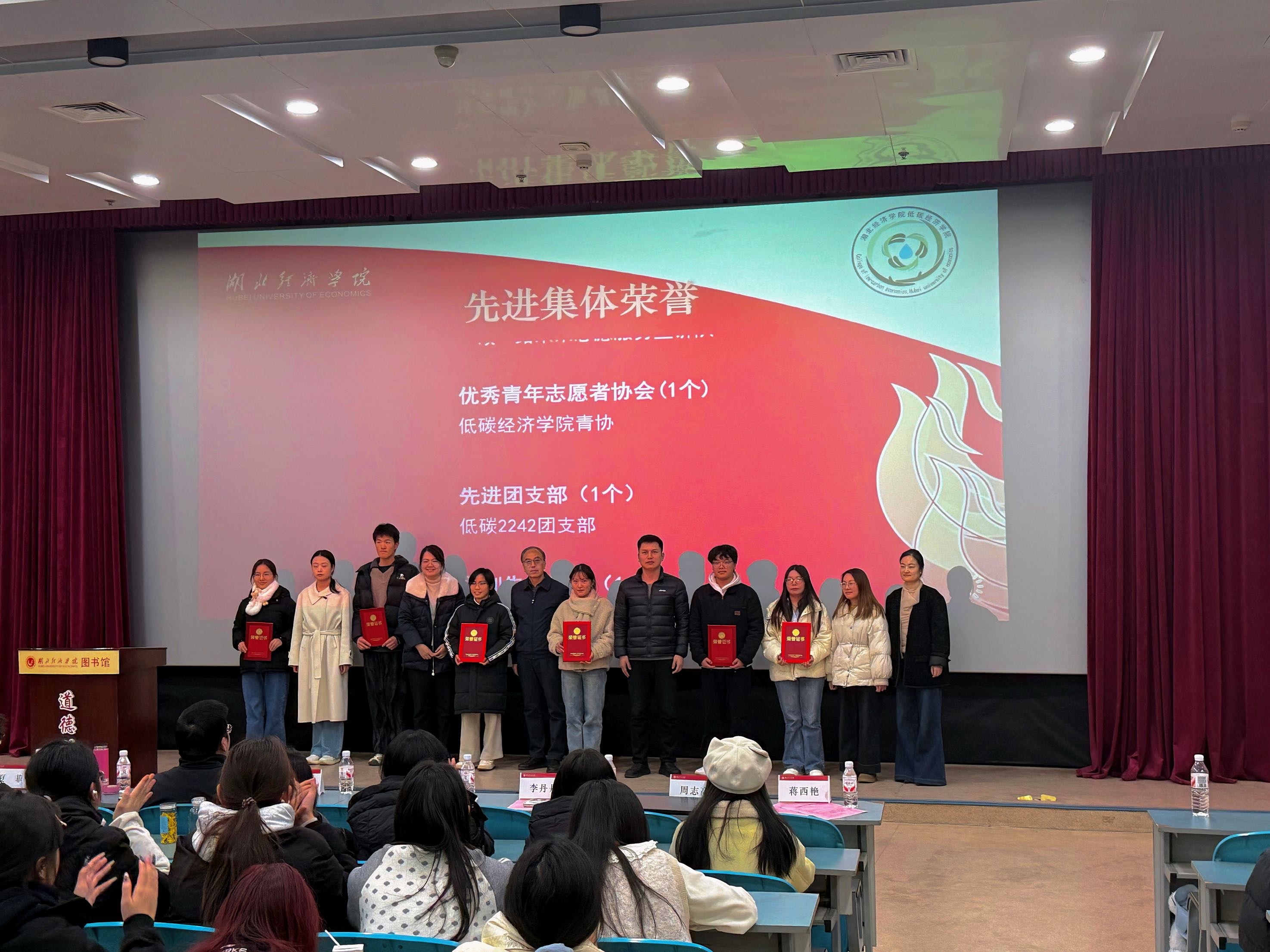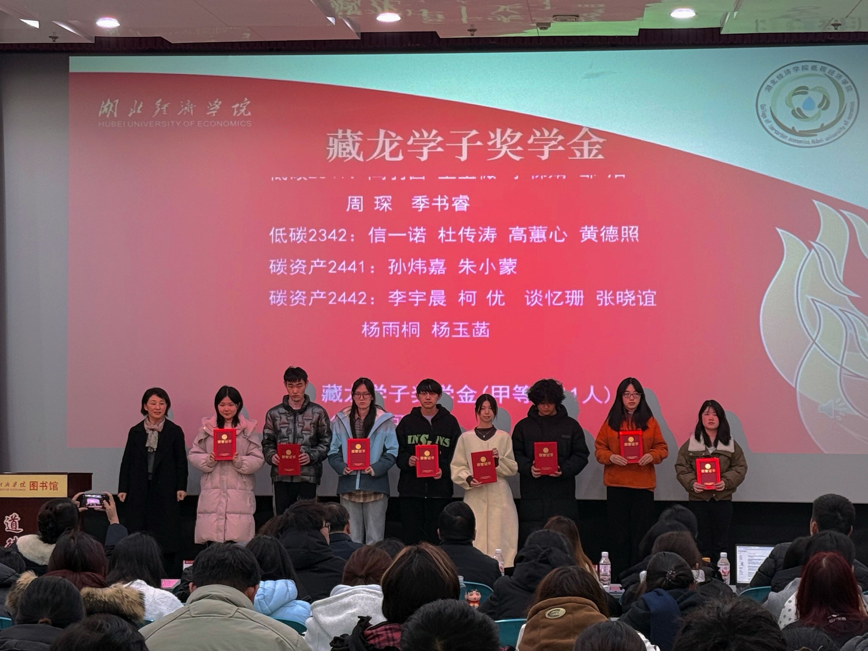 本网讯(通讯员 蒋西艳 审核人 夏菲)为树立榜样,激励广大学生奋发进取,充分发挥先进典型的示范引领作用,我院于2026年1月8日下午在图书馆一楼报告厅盛大召开 2024- 2025 学年学生先进集体和先进个人表彰大会。此次大会由碳资产2441班周凯乐主持,学院领导班子全体成员、各班班主任、辅导员以及全体学生齐聚一堂,共同见证这一荣耀时刻。
